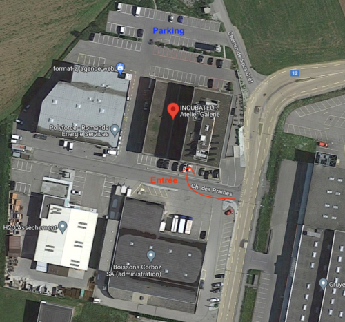 L’entrée se trouve du côté sud du bâtiment (chemin des prairies)