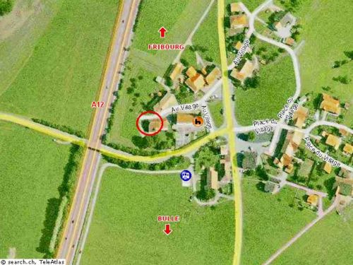 Sortez de l’autoroute à Bulle puis direction “Riaz hôpital” et suivez la direction “Fribourg par Le Bry” jusqu’à Vuippens, prenez ensuite à gauche jusqu’à l’église, puis à droite (depuis la sortie de l’autoroute, comptez environ 5 minutes).